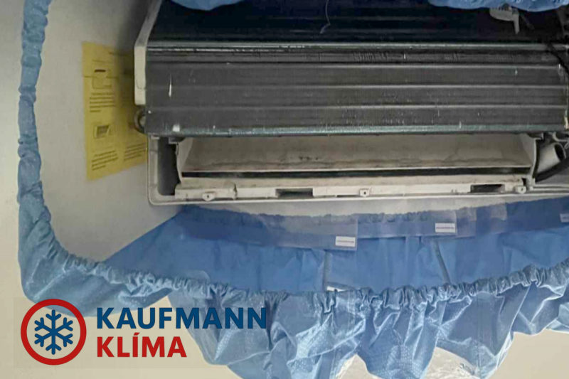 Split klíma tisztítása baktériumölő vegyszerrel és mosózsákos technologiával.